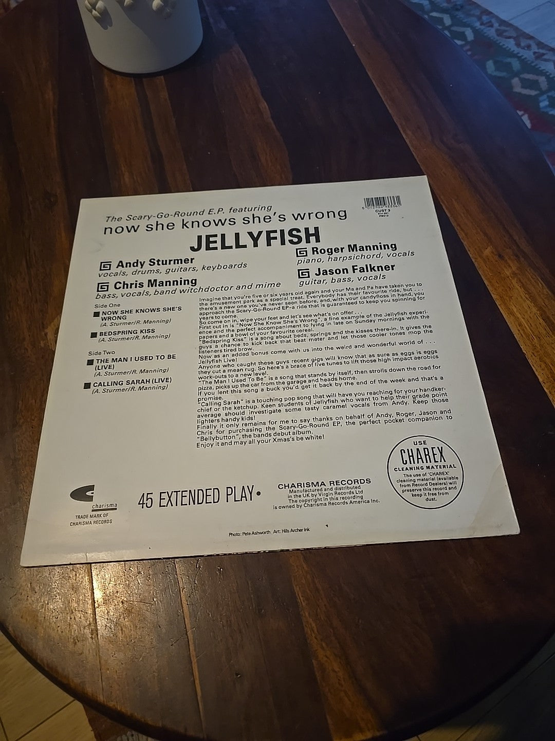 The Jellyfish The Scary Go Round EP Charisma CUST 3 is a 12-inch vinyl record featuring alternative power pop music. Released by Charisma in the United Kingdom, this picture sleeve EP plays at 45 RPM and is in the genre of pop. The record is in black and is a must-have for fans of the band or collectors of alternative music on vinyl. Perfect for adding a unique and vintage touch to any music collection.